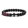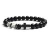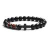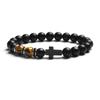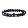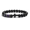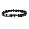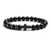 Fashion Religion Cross Men Women 8mm Natural Stone Tiger Eye & Black Matte Agates Bead Bracelet Elastic Bracelet Bangle Jewelry