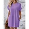 2026 New Women's Spring Summer Solid Color Round Neck Loose Fit Short Sleeve Pocket Casual Beach Dress