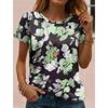 Fashion Artistic Flower Pattern T-Shirt Women Summer Leisure Graphic Tee Female Casual Elegant Short Sleeved Round Neck Tee Tops