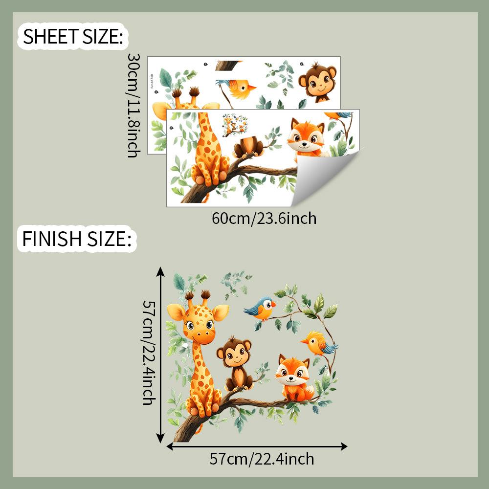 Cartoon Animals On a Branch Wall Sticker Whimsical Forest Self-Adhesive Removable Decor for Kids Room Nursery Bedroom Living Room