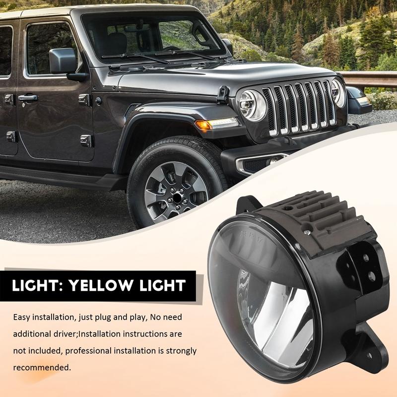 Car Front Bumper Fog Light Assembly For Jeep Wrangler JL 2018-2024 Yellow LED Daytime Running Light DRL Headlight Road