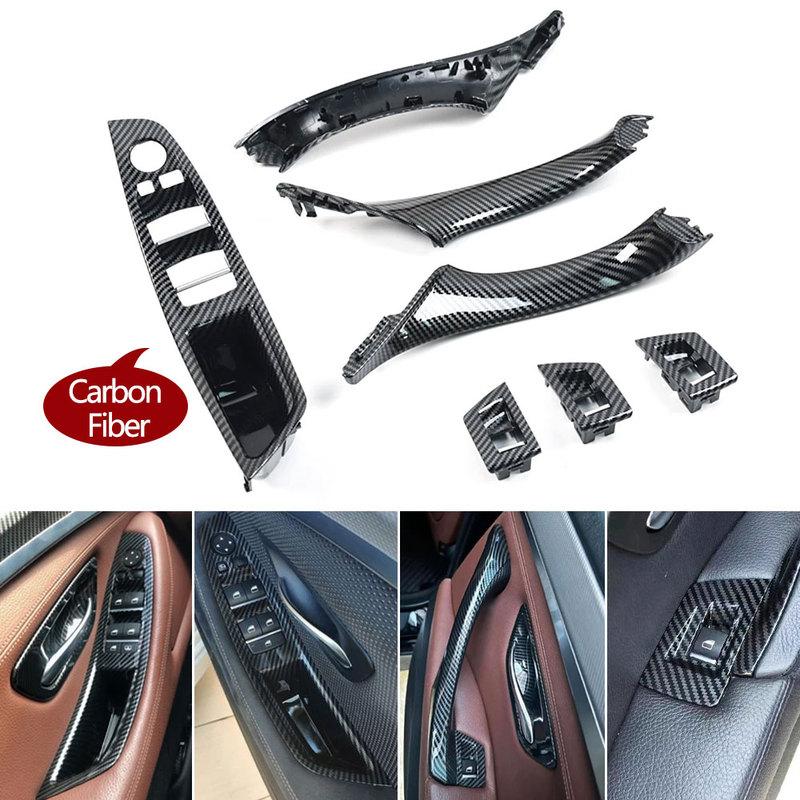 LHD RHD Carbon Fiber Interior Door Pull Handle 7PCS Set For BMW 5 Series F10 F11 F18 520i 523i 525i 528i 535i
