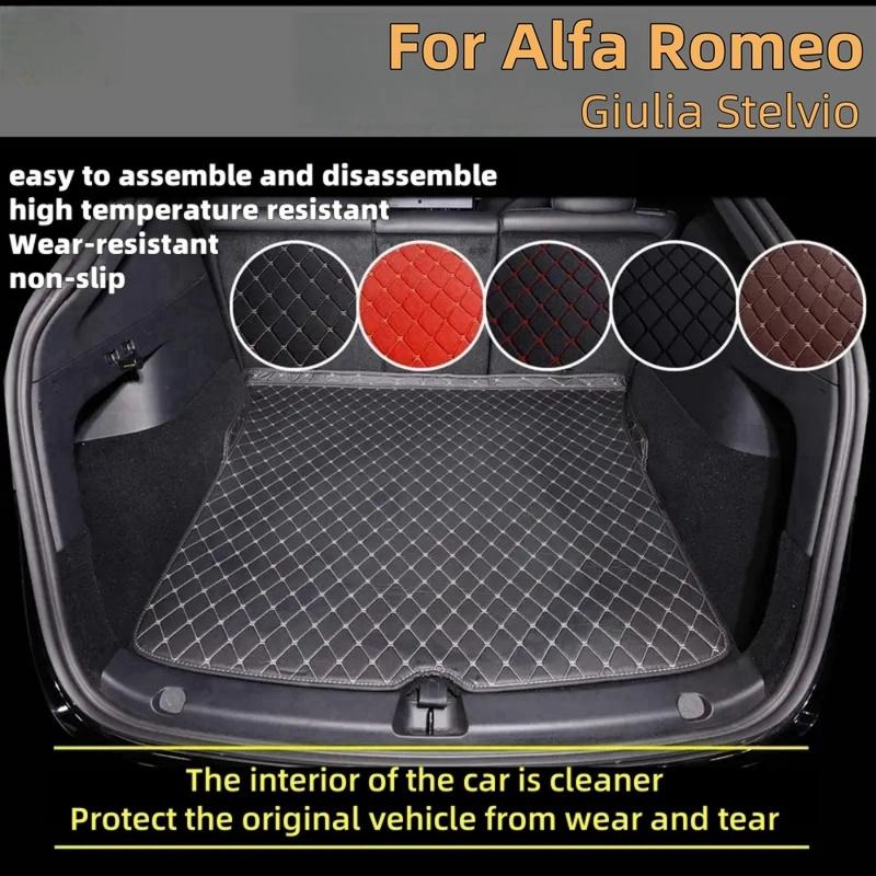 Car Trunk Mat For Alfa Romeo Giulia Stelvio 2017- Leather Anti-slip Car Cargo Trunk Carpets Pads Car Interior Accessories