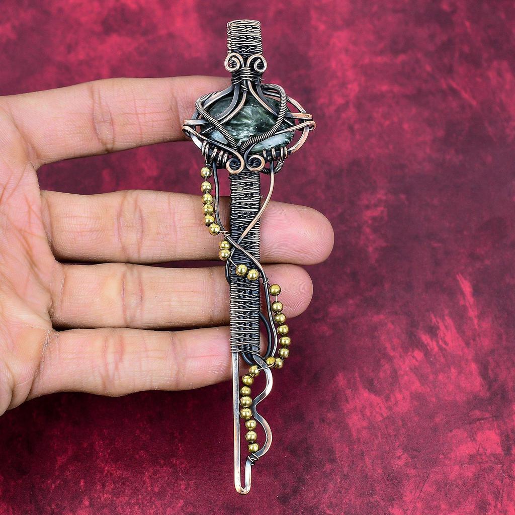 Seraphinite Pendant Copper Wire Wrapped Pendant Key Design Jewelry Genuine Gemstone Pendant Copper Jewelry Gifts for Women Handmade Pendant
