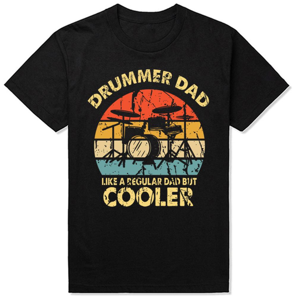 Funny Drummer Dad Like A Regular But Cooler T Shirts Men Cotton Humor Drum Father Tee Shirt Short Sleeve Unisex Loose Clothing