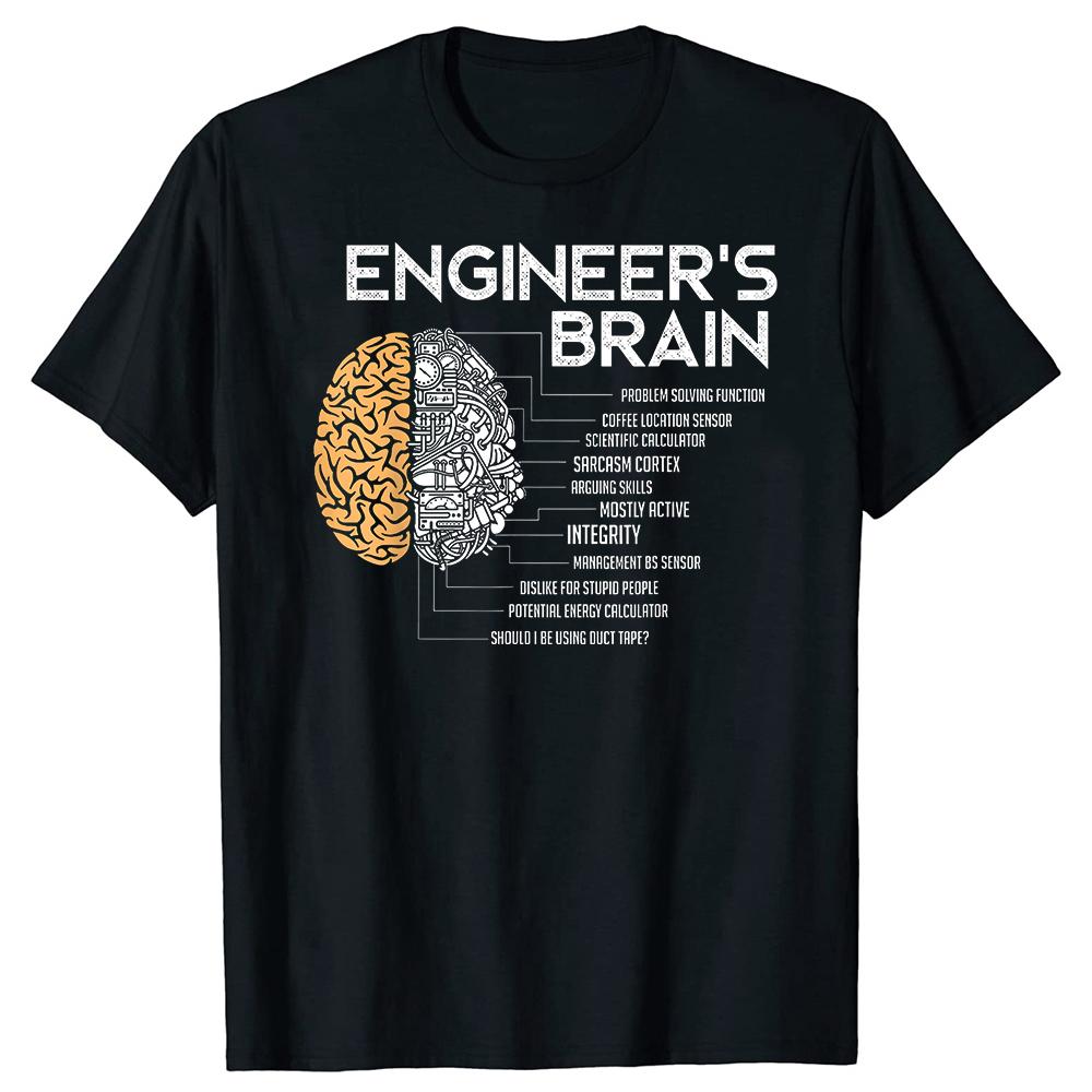 Funny Engineers Brain Graphic 100 Cotton Tshirts Men Fashion Print Tshirt Loose Oversized Streetwear Hip Hop Unisex T Shirt