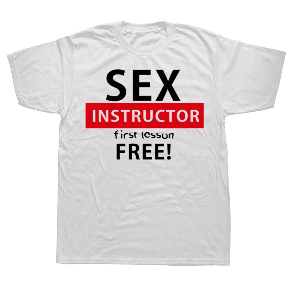Funny Sex Instructor First Lesson Free Adult Humour Cool Joke Party T Shirts Summer Cotton Streetwear Birthday Gifts Tshirt Men