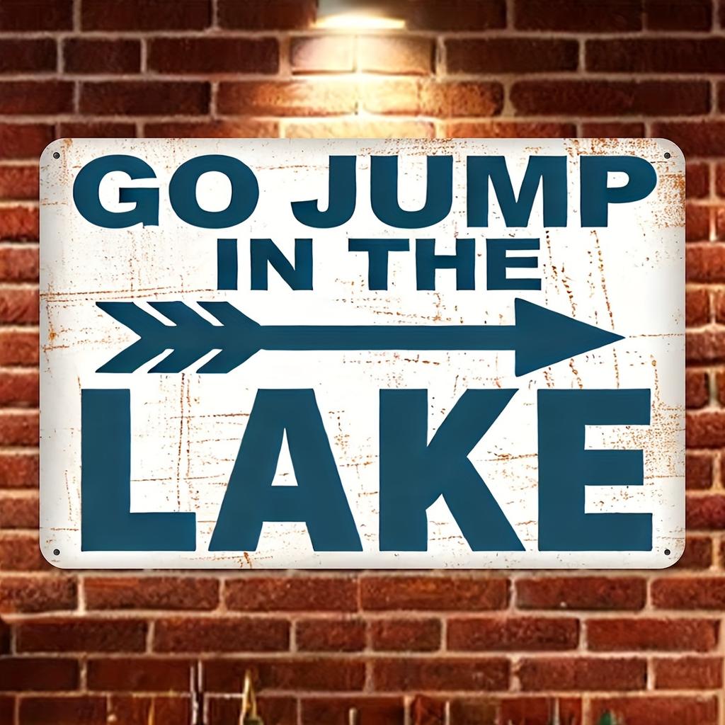 Vintage Iron Go Jump In The Lake Sign Directional Wall Decor for Lake House Reusable Farmhouse Home Decor Housewarming Gif