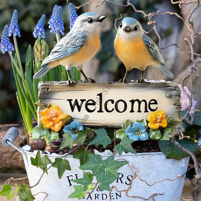 Q1FD Charm Avian Theme Welcome Plaque Ground Stake Decorative Garden Stake PVC Yard Stake For Year Round Display