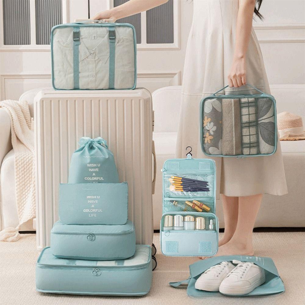 8Pcs Foldable Travel Organizer Set Waterproof Portable Suitcase Packing Cubes Various Sizes Large Capacity Portable Wardrobe