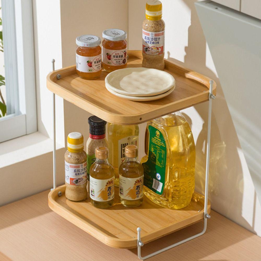 Durable Wooden Kitchen Shelf Multi-layer Seasoning Storage Corner Storage Rack Countertop Organizer Countertop Placement
