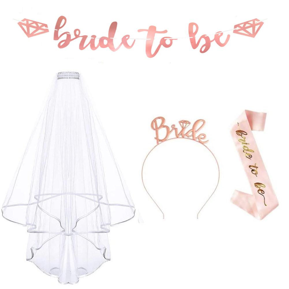 Bachelorette Party Bride To Be Bridal Shower Wedding Veil Headband Shoulder Strap Banner Set Wedding Party Decoration Supplies