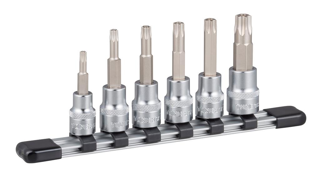 TONE Torx Socket Set with Includes 6 Pieces (Tamper-Resistant Holder) HTX306H, 9.5mm (3/8") Drive,