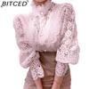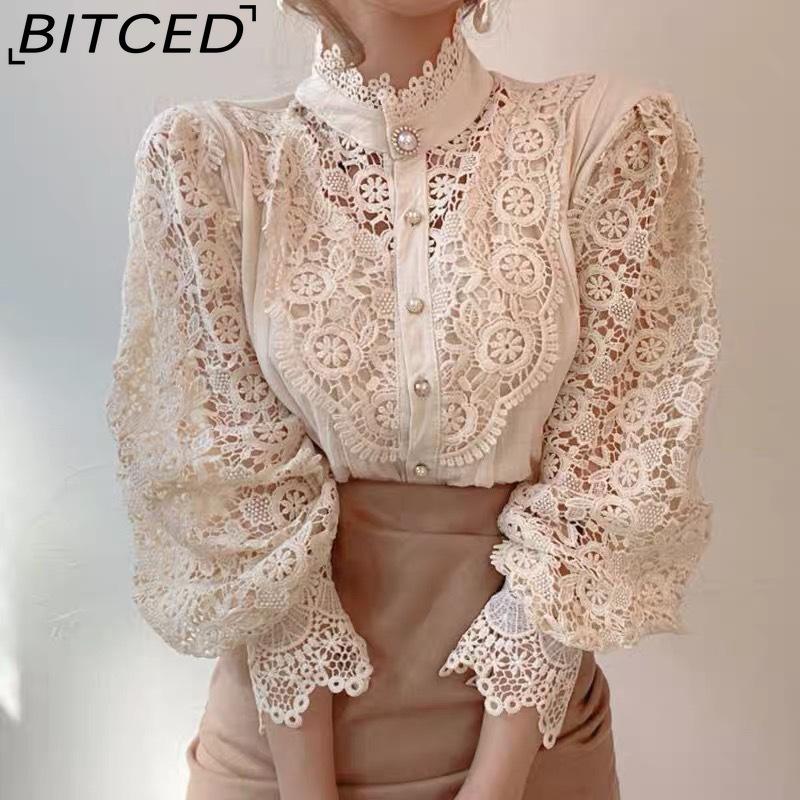 BITCED Women's Loose-fitting, Distinctive Button-down Lace-trimmed Floral Appliqué Shirt
