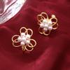 Korean Version of Simple Geometric Pearl Flower Stud Earrings Internet Celebrities Exquisite Commuter Earrings Earrings