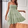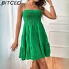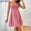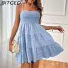 BITCED Women's Summer Off-the-Shoulder Fine-Strap Solid-Colour Textured Dress