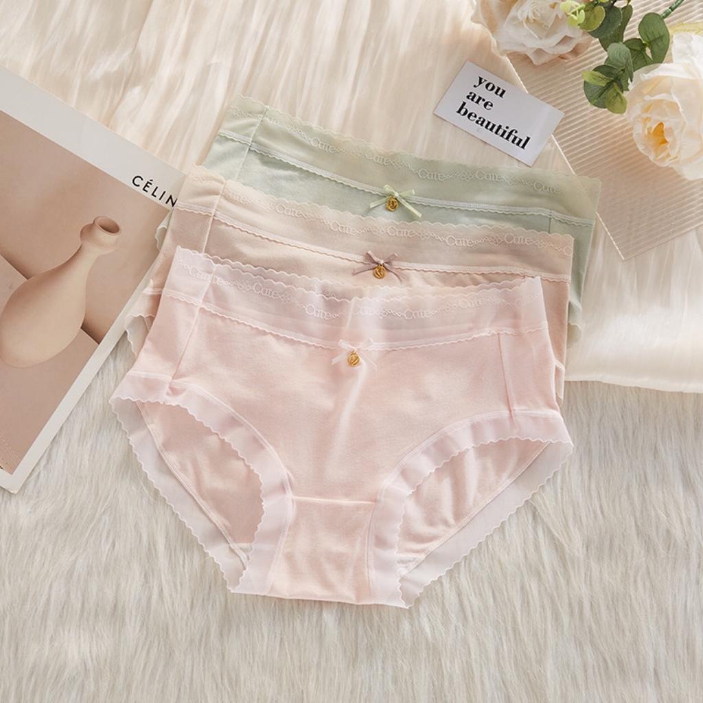 Plus Size Ladies Spring and Summer Lace Cotton File Comfortable Breathable No Mark Middle Waist Triangle Briefs