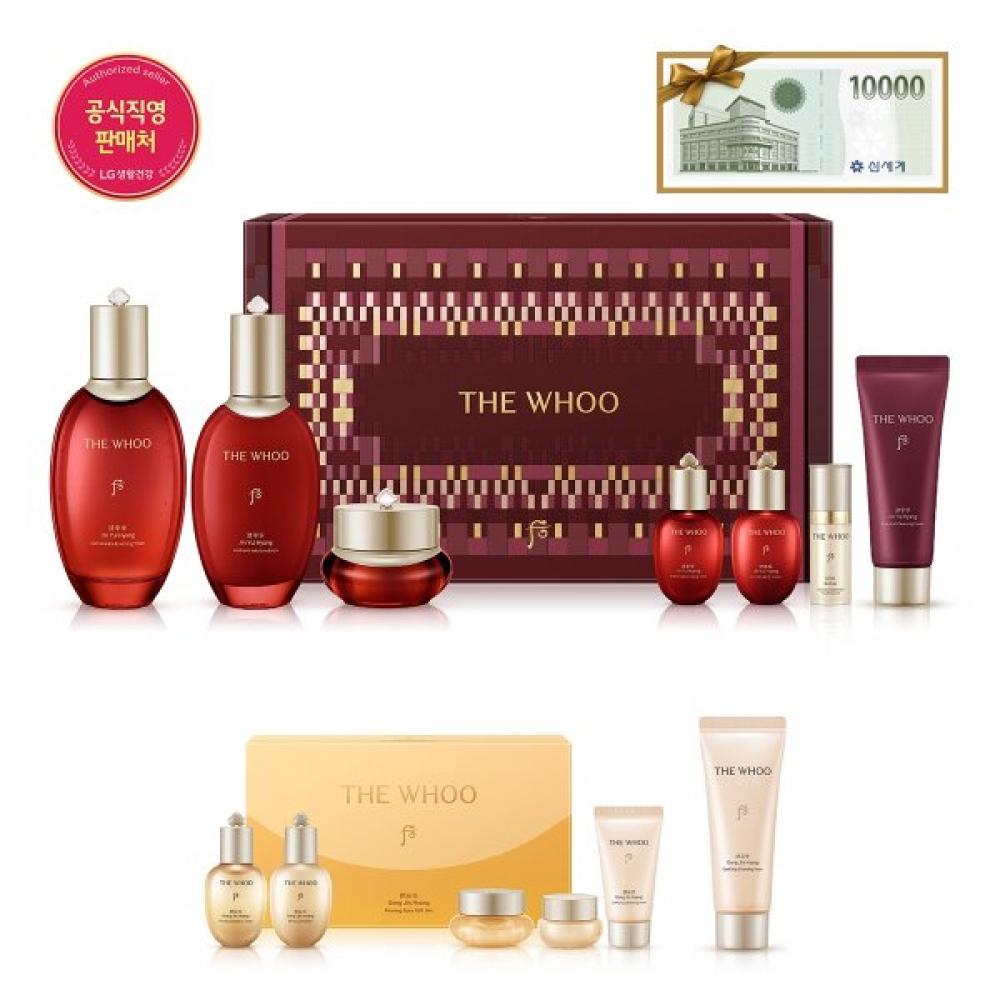 The History Jin-Yul Hyang Ki-Pum Set 3 Types is a high-moisture anti-wrinkle three-piece set containing the extract of Hong-San Ginseng. The set includes Jin-Yul Hyang Anti-Wrinkle Enriching Toner 150ml, Anti-Wrinkle Emulsion 110ml, and Anti-Wrinkle Cream 20ml, with additional gifts of Jin-Yul Hyang Anti-Wrinkle Enriching Toner 20ml, Anti-Wrinkle Emulsion 20ml, and Cleansing Foam 40ml. This set effectively moisturizes deeply and improves wrinkles.