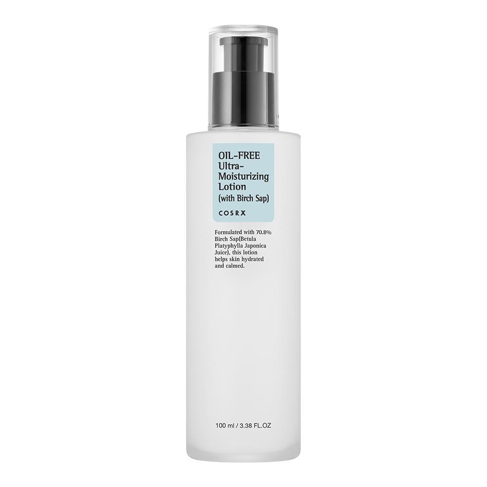 COSRX Oil-Free Ultra Moisturizing Lotion 100ml is a powerful moisturizing lotion suitable for all skin types. With 70.85% birch sap, it maintains a hydrated feel throughout the day and calms the skin. The lotion features a soft texture, absorbs quickly, and has a refreshing aqua scent.
