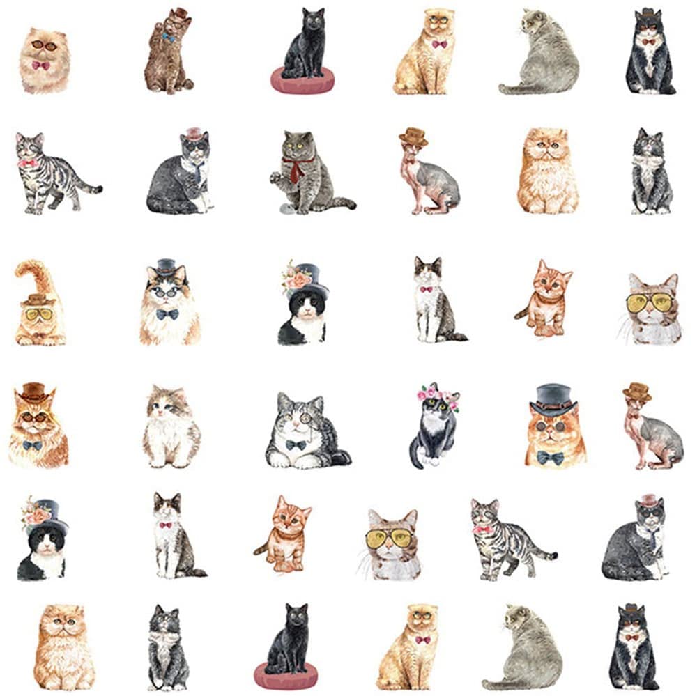 Moin Moin Cat Sticker Assorted Set Cute Watercolor Cat Decorative Reward Stickers Flakes, 92-Piece Animals, Schedule, Planner, Album, Letter,