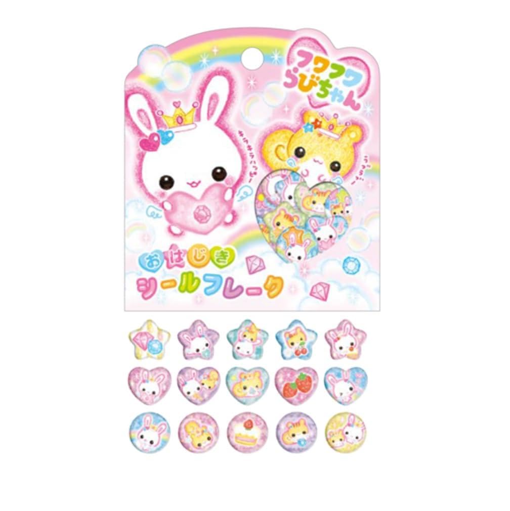 Crux Fluffy Rabbit Marble Sticker Cute Rabbit and Bear Star and Heart 15 Pieces Flakes, Characters, Pink, Shape,