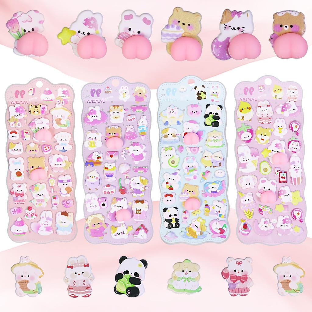 💖 [Squishy Texture & 3D Design] The biggest feature is that the "butts" of the animals are made of three-dimensional squishy material! Unlike flat stickers, they have a soft, squishy feel that makes you want to touch them. Not only are they visually cute, but they can also be enjoyed as a stress-relieving and soothing item.