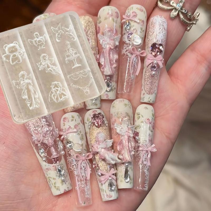 3D Baroque Angel Butterfly Christmas Tree Snowman Nail Mold DIY Nail Art Decorations Silicone Carving Mold Manicure Template