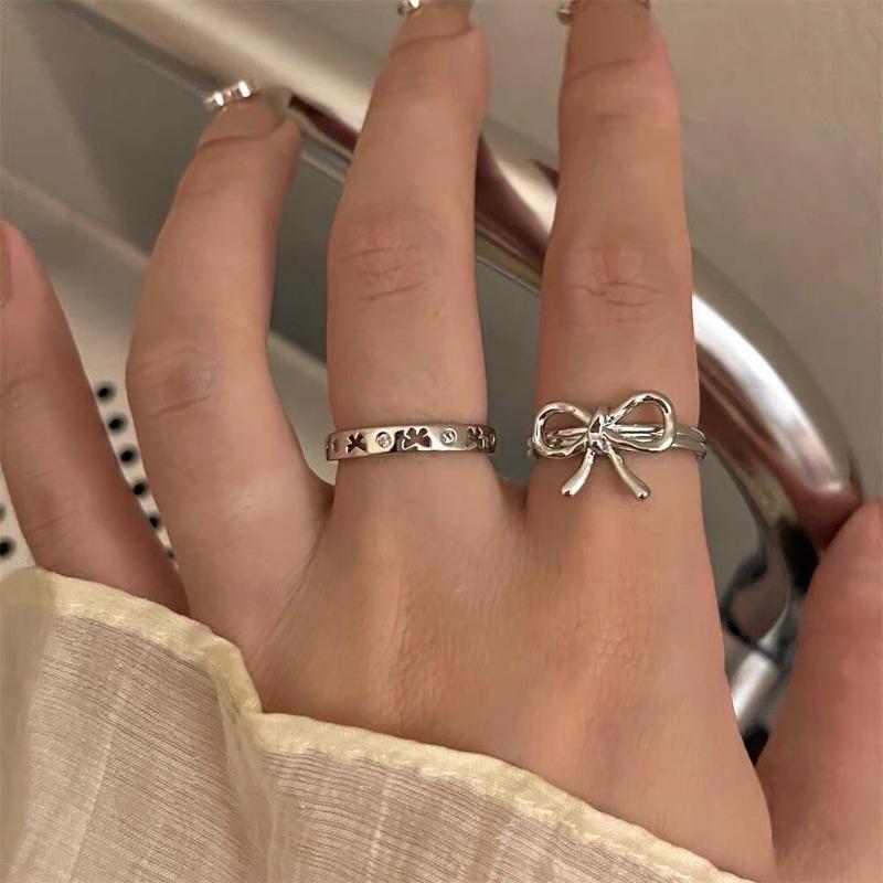 Fashion Bow Ribbon Rings For Women Sweet Cute Geometric Bow Opening Adjustable Rings Wedding Party Jewelry Gifts