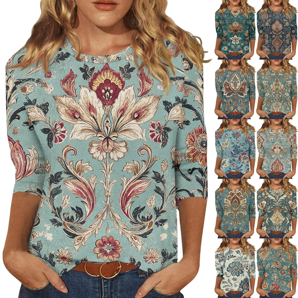 Women's Fashion Casual Seven Sleeve Vintage Printed Round Neck T-Shirt Top Features: Material Lightweight,ultra soft could keep you warm all day but stay cool Occasion: Daily wear, vocation, Christmas, dates, sports, school, working, street wear,etc. Easy to pair with boots, jeans, skinny leggings for a trendy look in spring,winter. Clothes perfect to you favorite jeans,pants etc. Clothing care: low temperature hand wash / machine wash, do not bleach, avoid exposure, hanging to dry. Features: Casual showing your unique charm and vitality, add a sense of elegance. It's soft and comfortable, and You will love it when you receive it. Kindly note size vary among different colors. Please check product description for more size information. Product information: :All Gender:Women Occasion:Casual Material:Polyester Length:Regular Fit:Fits ture to size How to wash:Hand wash Cold,Hang or Line Dry What you get:1XWomen Top