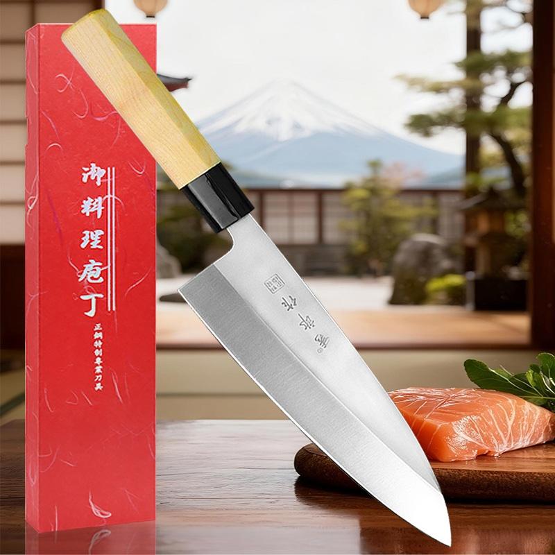 Professional Chef's Knife Salmon Slicing Knife Japanese Sashimi Knife Single-edged Blade Sushi Fish Knives Meat Cleaver with Box