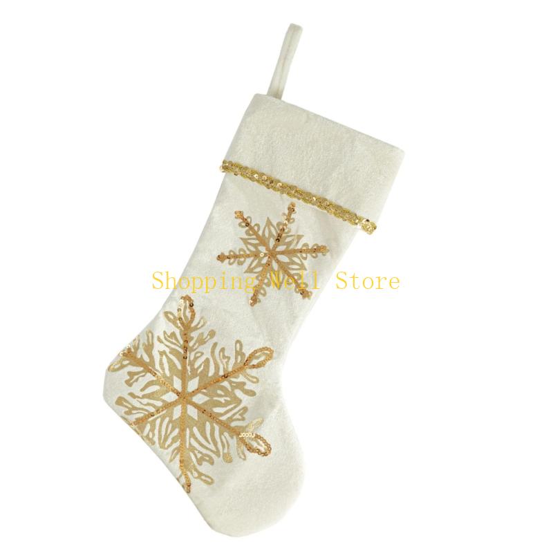 KX4B Christmas Tree Ornament Snowflake Christmas Stockings Gift Bag Christmas Hanging Socks For Fireplaces Door Decoration
