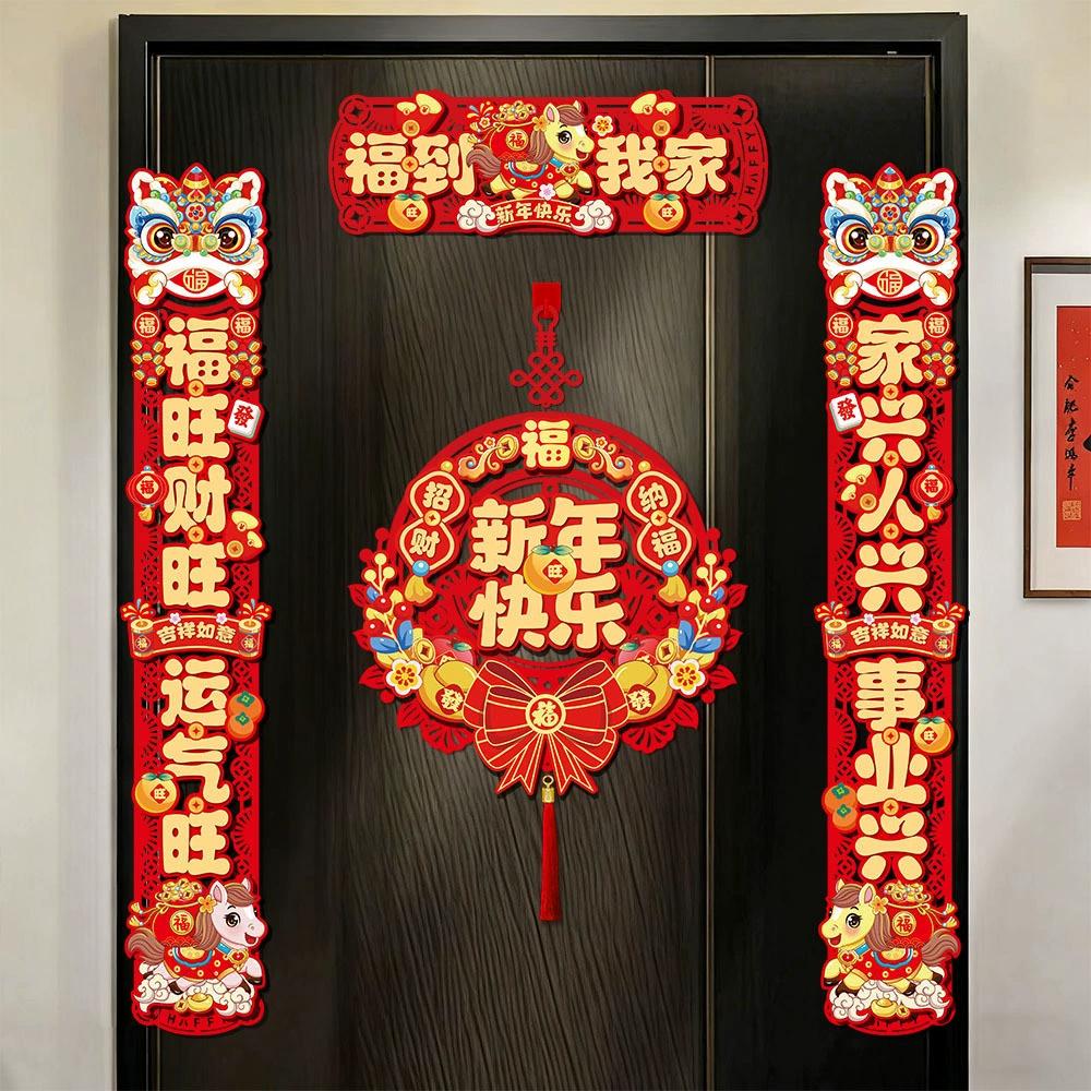 1Set 2026 New Year Magnetic Spring Festival Couplets Horse Year Fortune Character Door Stickers Traditional Culture Decoration