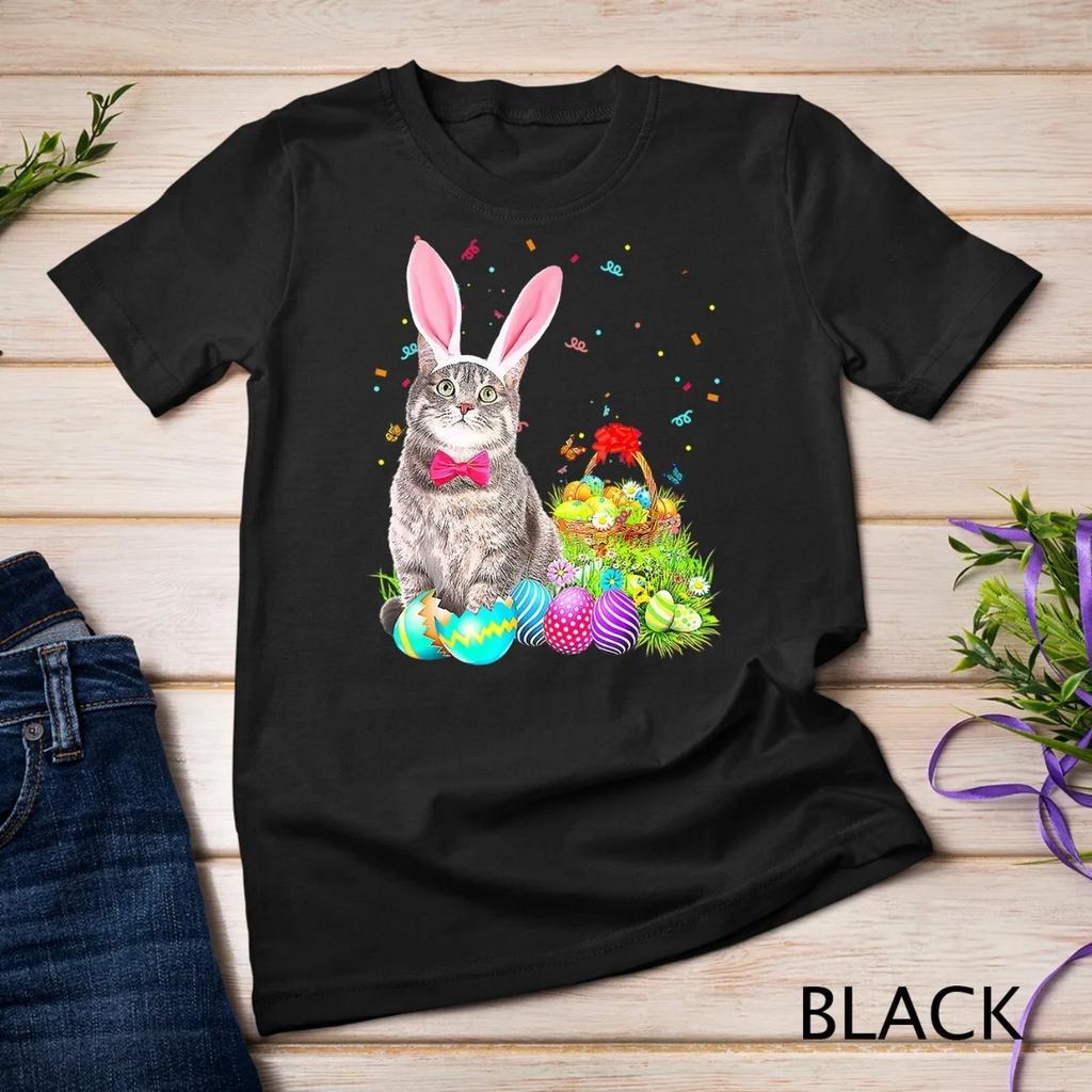 Happy Easter Cute Bunny Cat Eggs Basket Funny T Shirt