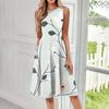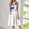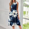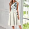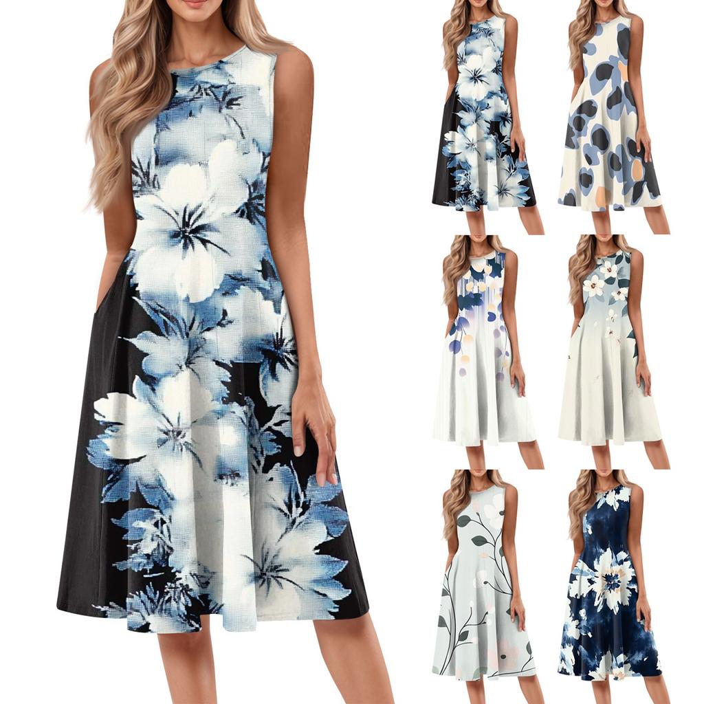 Women's Casual Fashion Floral Print Round Neck Sleeveless Color Midi Dress