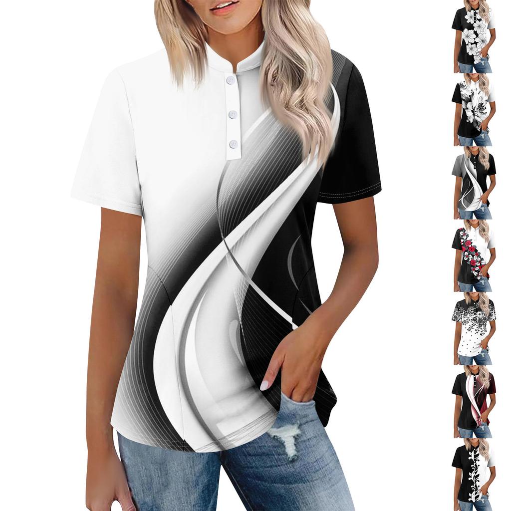 Women's Casual Floral Print V-Neck Short Sleeve Decorative Button T-Shirt Top Features: 1.Material: Made of high quality material, and suitable for everyday wear, made of soft fabric, polyester, light and comfortable, easy to dress up or take off, comfortable to wear all day long. 2. Occasion: This product is perfect for everyday, beach, outing, party, work, casual wear. It's so random you might some extra covers! This one is available in a variety of colors to suit your personal 3. It can be given to friends, family, yourself, etc., it is the best choice for gifts 4. Wash with cold water, the size will not change much, if you have any questions when choosing, welcome to consult 5. Different monitors will have a little color difference, please don't mind Product information: Seasons: Four Seasons Material: Polyester Gender: Female Occasion: Everyday, Casual Sleeve Length: short Sleeve Fit: fit Thickness: Standard Washing method: Hand wash in cold water, hang or dry You will get: 1 x Women's top