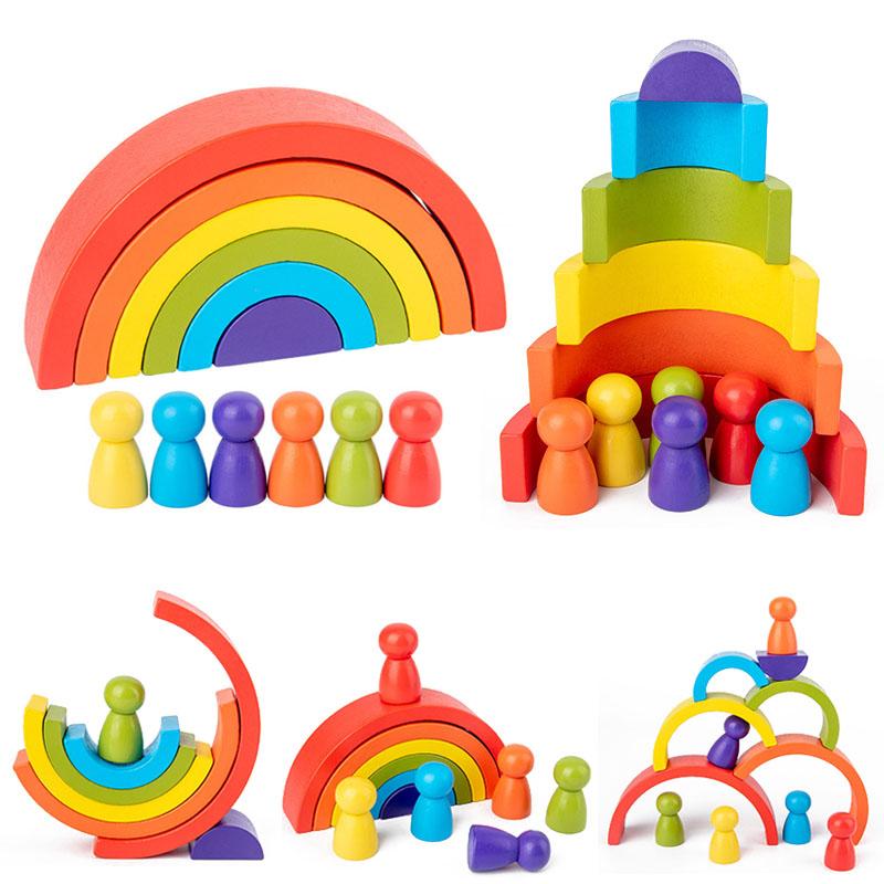 Montessori Wooden Toys for Babies Rainbow Stacking Block Toy Blocks Round Shape Construction Tower Kids Educational Learning Toy
