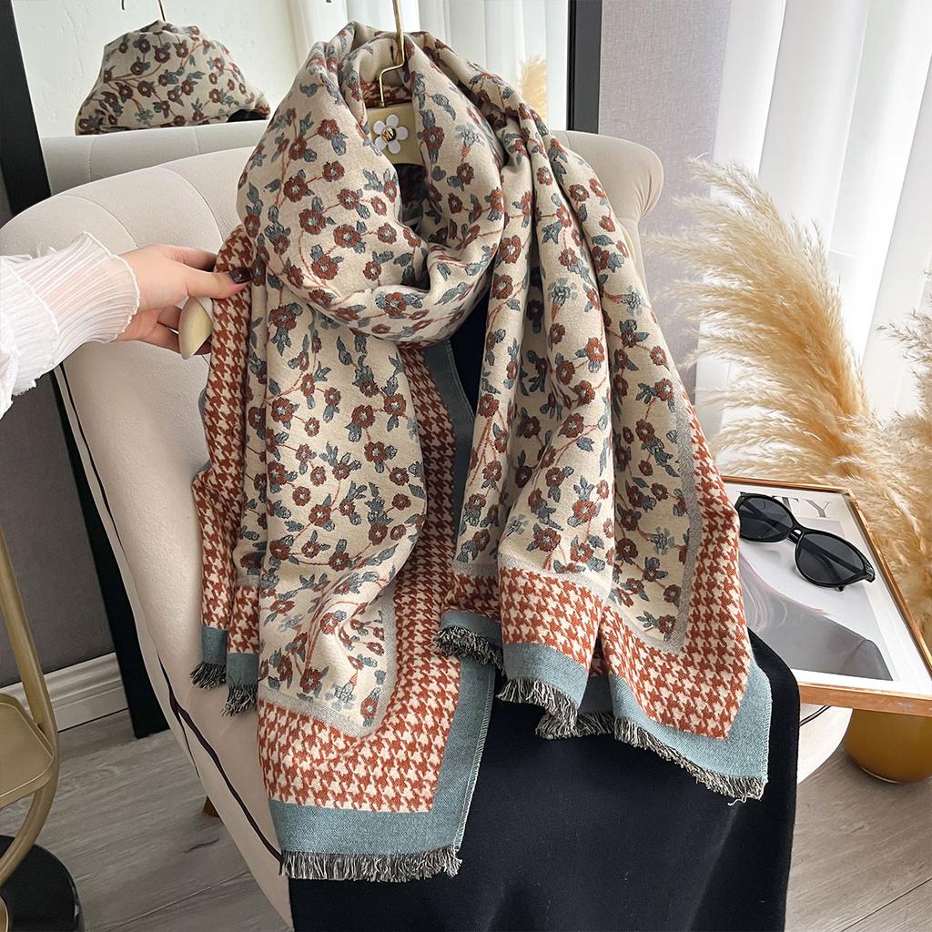 Women New Two Sided Floral Print Imitation Cashmere Scarf Soft Warm Pashmina Shawl Autumn Winter Coldproof Windproof Blanket