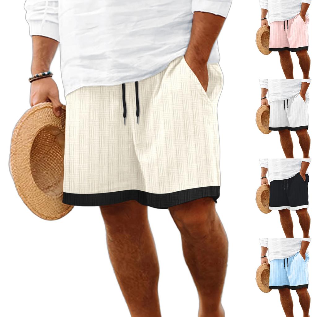 Men's Casual Stylish Striped Multi-color Five-pocket Pants / Men's Drawstring Breathable Beach Shorts