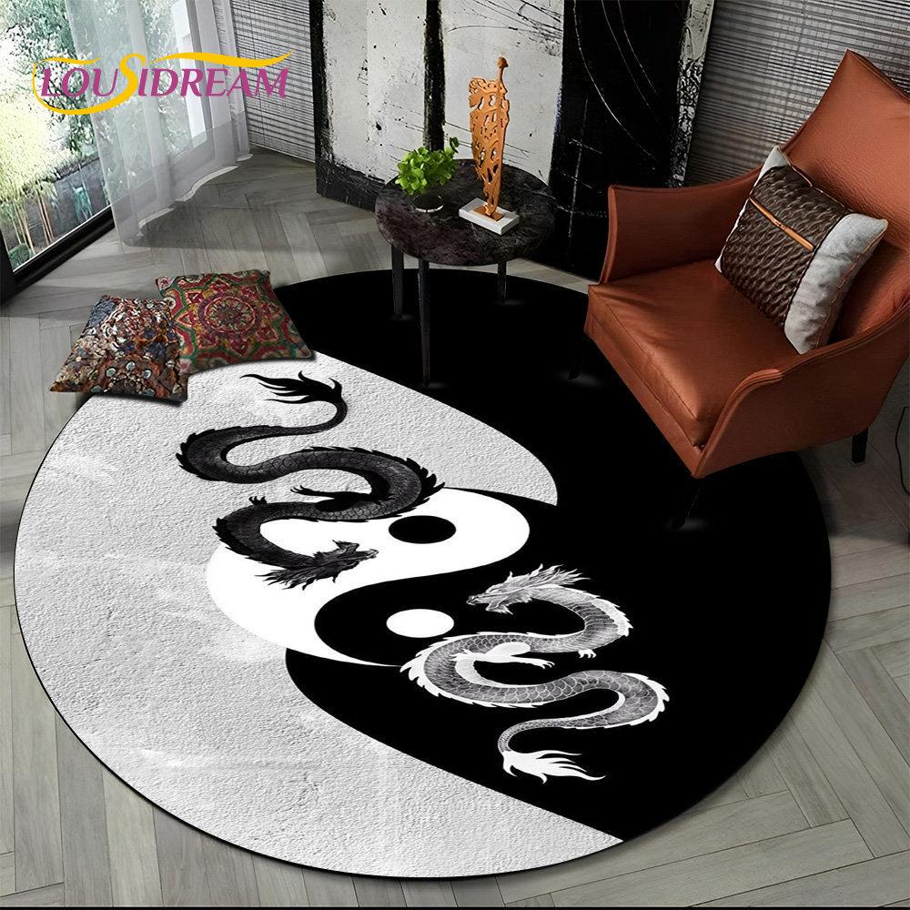 3D Chinese Tai Chi Bagua Yin Yang Round Area Rug,Carpet Rug for Living Room Bedroom Sofa Playroom Decor,kids Non-slip Floor Mat