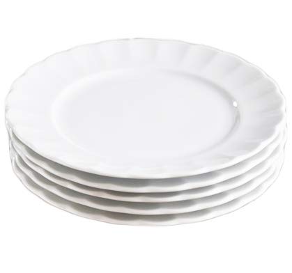 Set of 5 White Dinnerware: Floral-Shaped, Shatter-Resistant Porcelain TIARA Pure White Ruffle Cake and Salad Plates, 19cm
