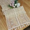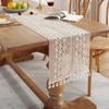 Beige Crochet Tassel Table Runner,Cotton Fabric for Kitchen Dining Coffee Table Wedding Birthday Holiday Decor