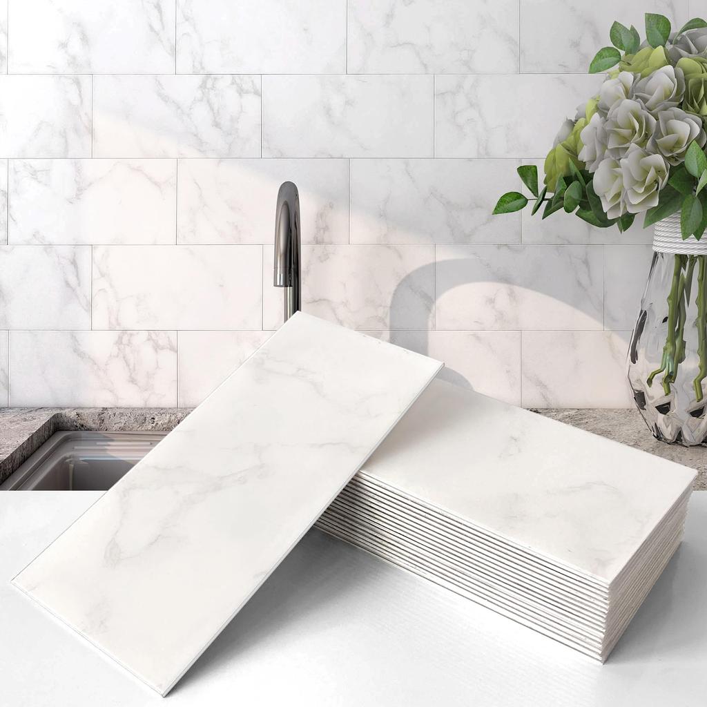 VAOVI Wall and Kitchen Tile Stickers, Marble Look, Heat-Resistant and Waterproof, for Toilets, Entryways, and Bathrooms, 98x198mm (23 Sheets, Carrara