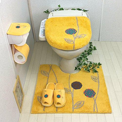 In feng shui, yellow is said to bring good fortune. Bring good fortune with this vibrant yellow toilet mat! ● 4-piece toilet mat set including a lid cover for a heated toilet seat. ● Fully washable for constant cleanliness. ● Toiletries with a natural feel. ● The flower stems are made with cotton thread, creating a warm and varied texture. ● The embroidered motif features paper-cut flowers. *Manufacturer, Brand, and Name: Oka Etoff Two Yellow *Set Contents: 1: Washlet Lid Cover (approx. 42 x 40 cm), 2: Toilet Mat (approx. 57 x 62 cm), 3: Paper Holder Cover, 4: Slippers (approx. 26 x 21.5 x 7 cm) *Materials: Lid Cover/Toilet Mat (90% Acrylic, 10% Cotton), Paper Holder Cover (100% Cotton, Molded Parts: Polypropylene)
