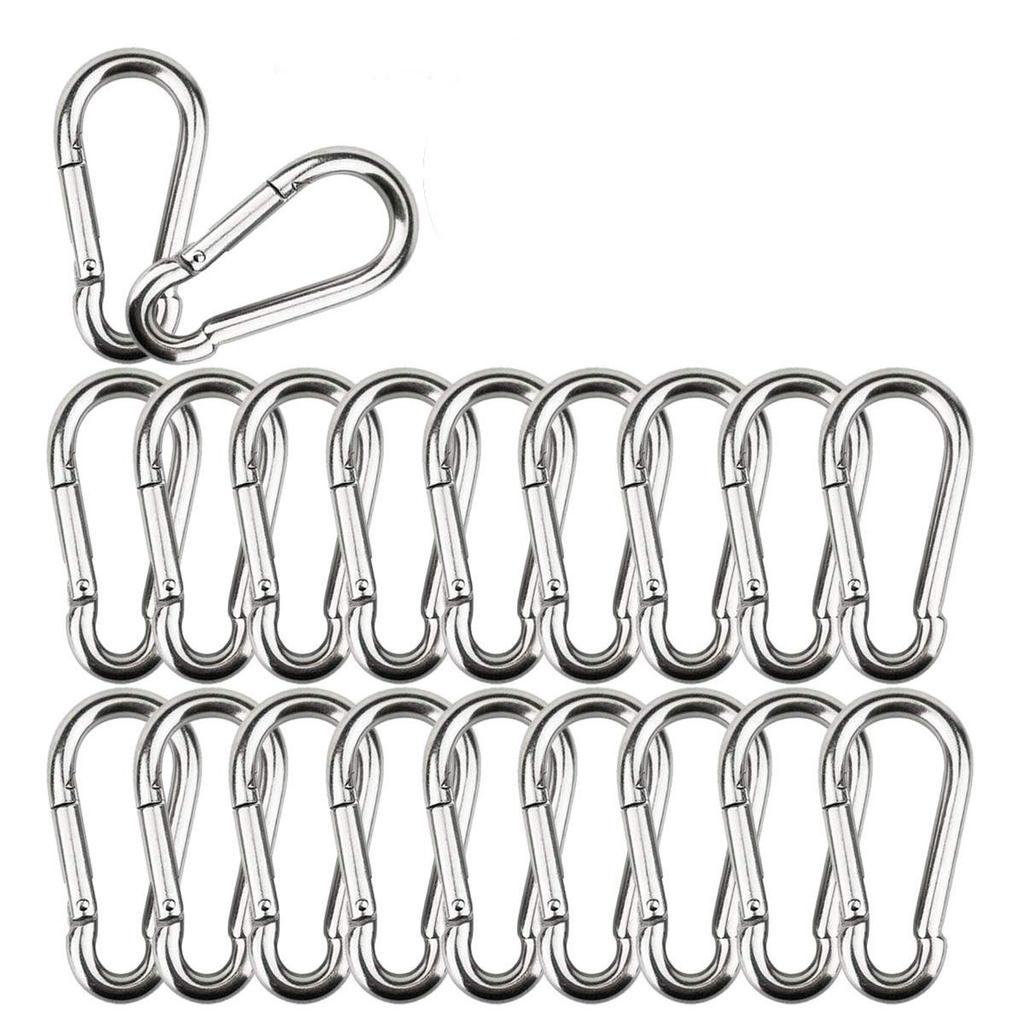 304 Stainless Steel Spring Hook Carabiner, Keychain, Small or Large, Heavy-Duty, Spring Snap, 200kg Load Capacity (8cm, Pack of 20)