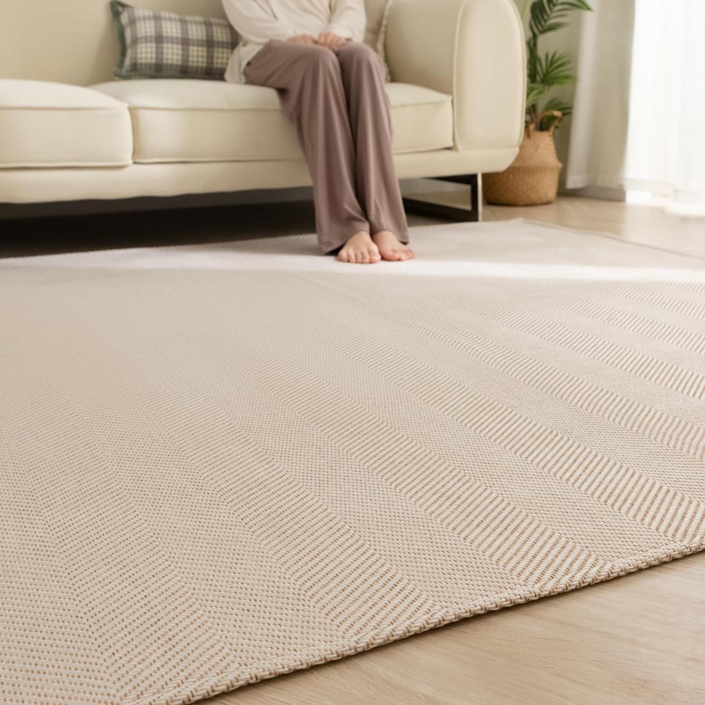 Sun Deco Rug, 3-Tatami Size Rug, Herringbone Pattern, Stylish, Non-Slip, Washable, Comfortable for All Seasons, Spring/Summer, Living Room Rug, Nordic