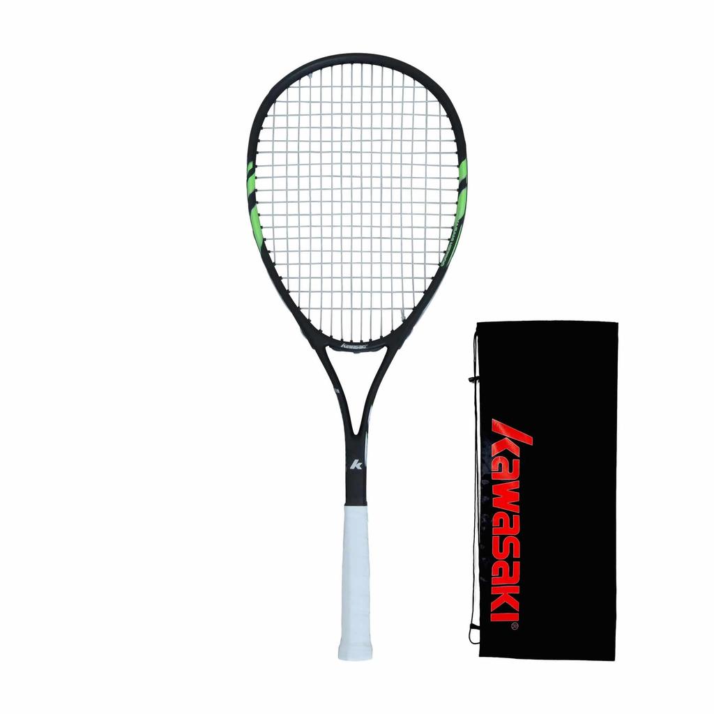 Kawasaki KS-7000 Soft Tennis Racket with STA Mark, Officially Playable, Forward/Backcourt, All-Around, Beginner-Friendly, Pre-Strung (Black X Mint, Si