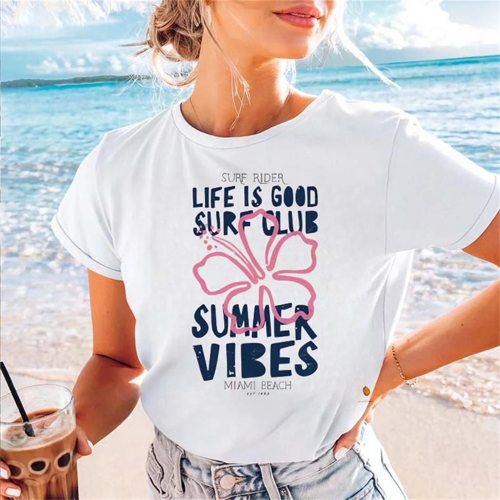 Women's Fashionable and Sweet Printed Letter Pattern T-Shirt Casual Short Sleeved Clothing Women's O-Neck Top Aesthetic T-Shirt
