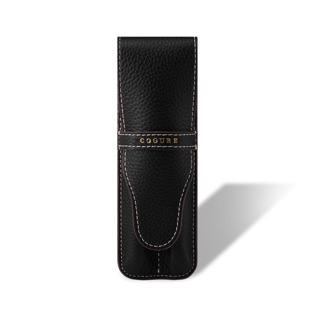 COGURE Pencil Case, Leather Slim Pencil Case for Fountain Pens, Handmade, Luxury Brand, COGURE, Gift, Includes Box, COPenCase, Two Pencils, Black