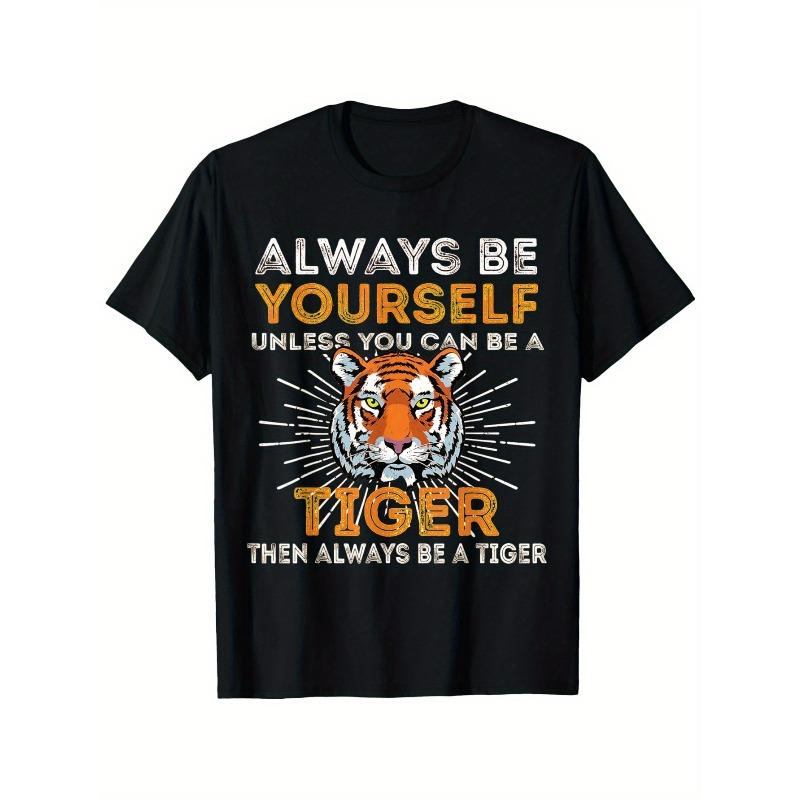 European Sizes Men's 'Always Be Yourself Unless You Can Be A Tiger' Graphic Tee - Soft, Black with Orange & White Tiger Design, Casual Short Sleeve
