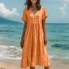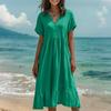 Women's Fashion Color Short Sleeve Cotton Linen Patchwork Pleat Dress